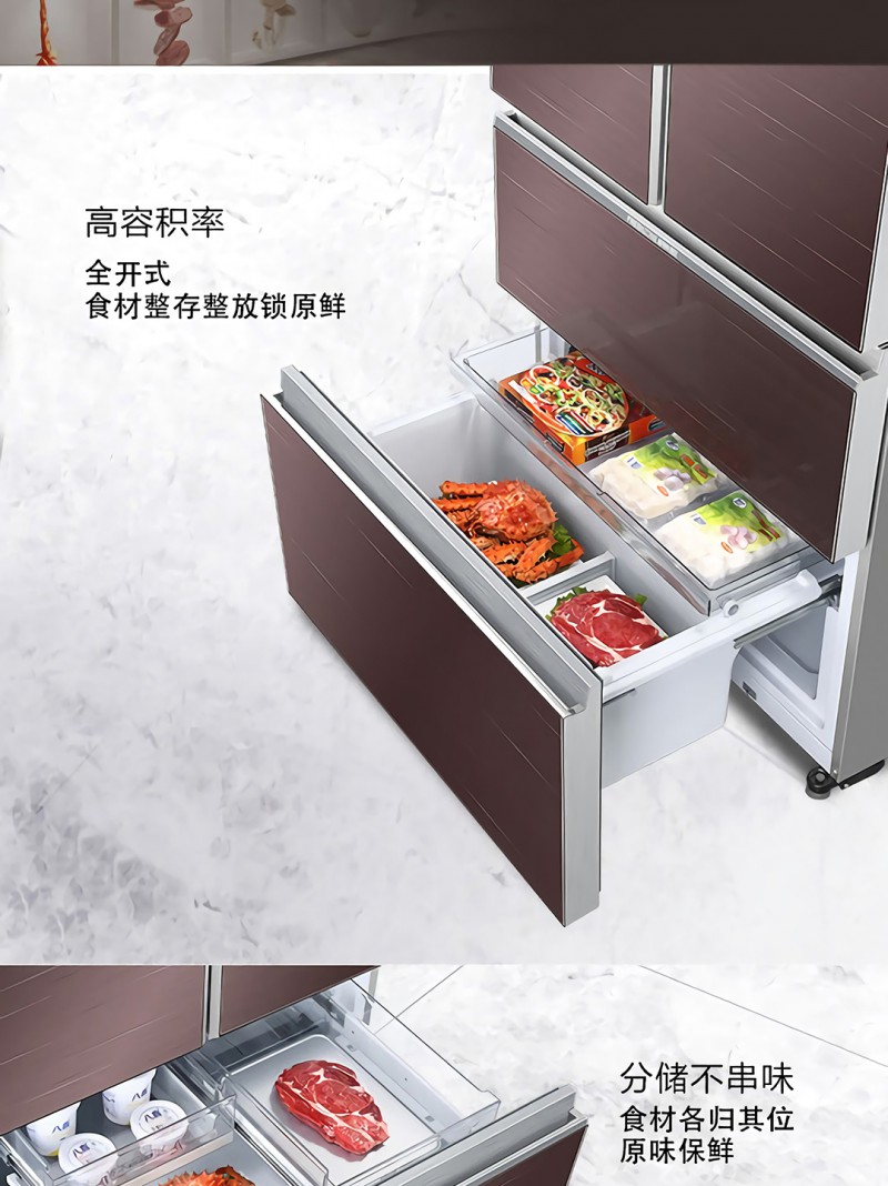 海尔(Haier)550升风冷无霜变频节能 多门冰箱彩晶玻璃面板精控微风道超导料理盘 BCD-550WDEYU1