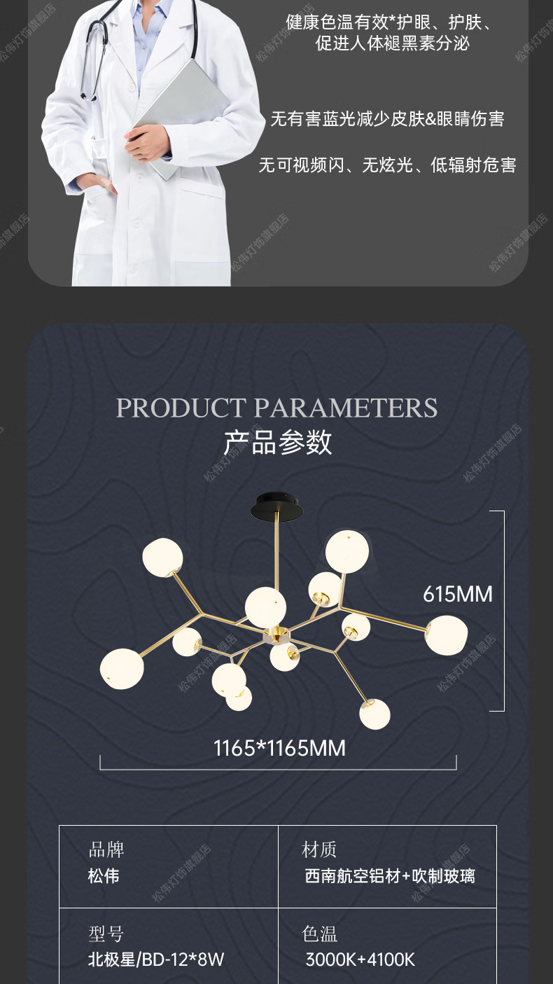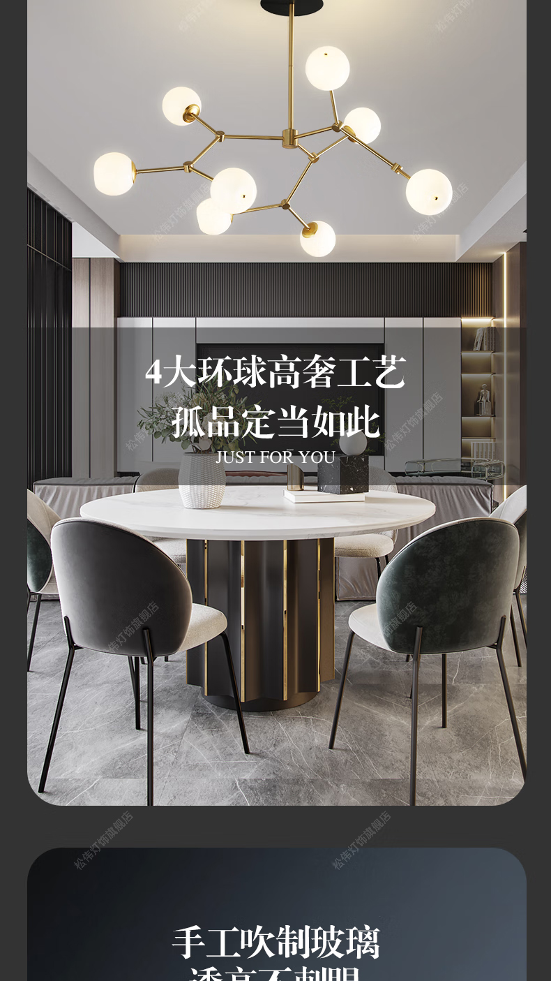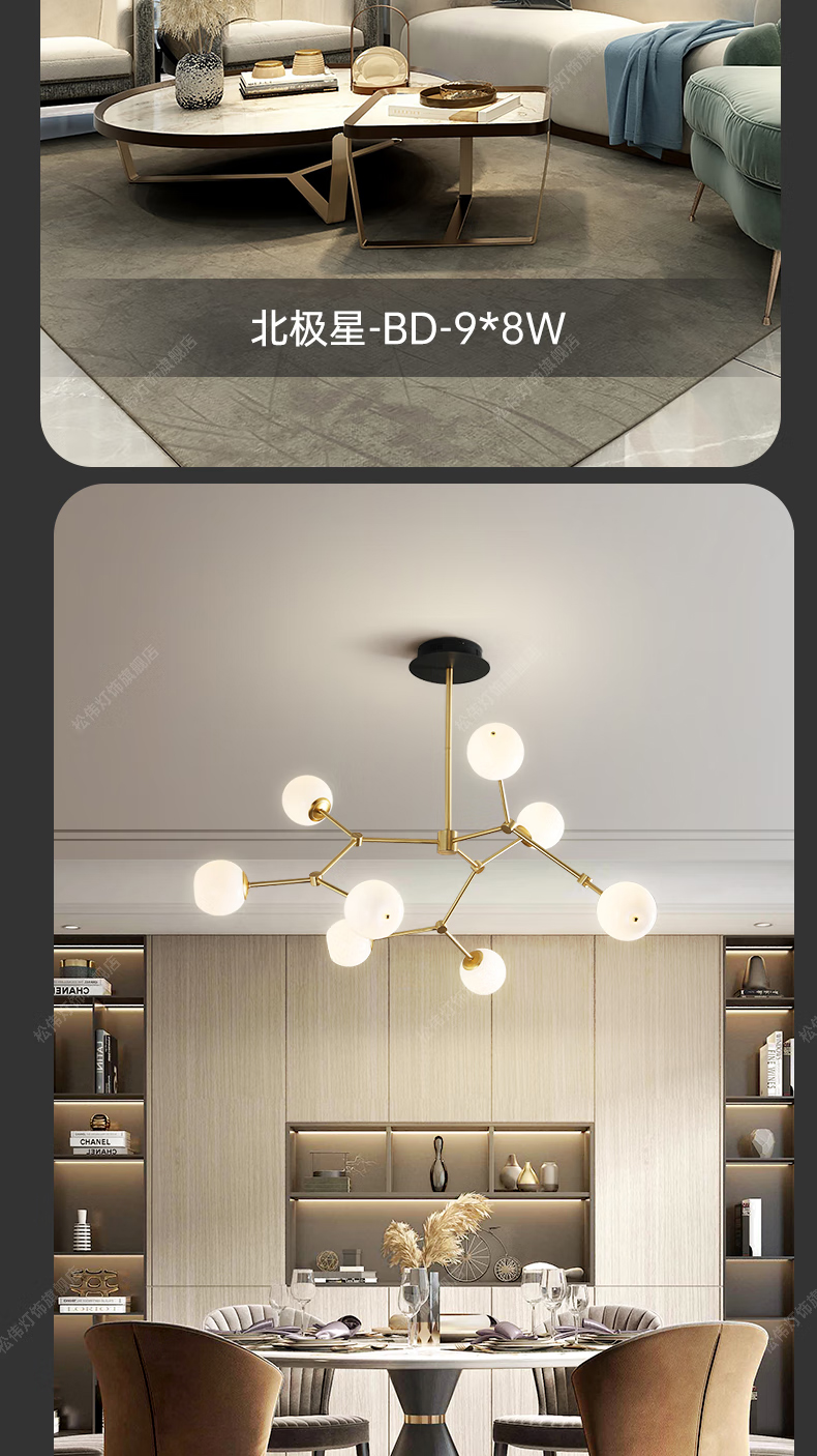 - 商品名称:松伟【北极星】北欧轻奢分子灯客厅灯ins风创意餐厅灯现代设计师吊灯 北极星/BD-12*8W